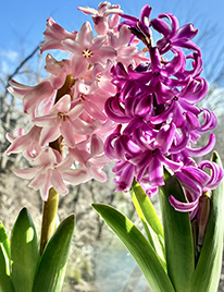 季節が変わると、窓からの陽光の角度が変わって来るのがわかります。 それに合わせて、作業机があちこちに移動して行くアトリエの室内。 衣替えはまだ先だけれど、机の向きで季節の変わり目を感じる。 今年もそんな季節がやって来ました。 お陽さまの光で感じる、春の予感です。 新しい角度に決まった作業机で描く作品たち。 筆の動きも自然光で見る花々も新鮮に感じます。 今月は庭に初のクロッカスが登場しました。 四つ足で歩く森の住人たちがよく訪れるアトリエの庭。 新しい花々が見つからないように気をつけて植えてはみたものの 翌朝にはあぁ早くも森からのお客さまに見つかってしまい、幾つか掘り起こされておりましたが 明るいイエローの花々が真っ直ぐ空を見上げて咲く様子は、とても愛らしいです。 そういえば、このクロッカスについて最近ある発見をしました。 ある日、海外ニュースで農産物の特集を見ていると 世界で一番の高価なスパイス・サフランについての映像が流れ出しました。 生産者の方々は、乾燥した大地から真っ直ぐ上を向いて咲く薄紫色の花の中から 赤褐色の細いヒモ状になっているオシベたちを、1本1本、それはそれは丁寧に手で摘んで行きます。 その映像を見ていて思ったのです。 葉っぱの姿があまり見えず、大地からとても低い位置でいきなり花が開き出す、この独特な咲き方。 サフランの花を実際に見た事などないハズなのに...どこかで見た事があるような...? しばらく思いを巡らせた後、ふと、ちいさな球根から直で咲くクロッカスの姿を思い出しました。 これだ!妙にクロッカスに似ている。 そこで検索を始めてみたら...なんとなんと! サフランの別名が目に飛び込んで来たではありませんか。 「秋咲きクロッカス」 「...え!サフランってクロッカスだったの?!」 この瞬間、頭の中に仕舞い込んでいた古い電球にピカッと灯がともったような、なかなかの衝撃を覚えました。 一方クロッカスの別名は「花サフラン」「春サフラン」。 なるほど。なかなか紛らわしいですね。。 同じアヤメ科クロッカス属の姉妹種であるらしいこのサフランとクロッカス。 サフランが秋に開花期を迎えるのに対し クロッカスは一部だけ秋咲きのものがあるとはいえ、その多くの品種は初春に咲き始めるようです。 学名を見ると両者とも「Crocus」という名を持っており サフランは「Crocus sativus」、一方クロッカスは「Crocus vernus」と記されていました。 調べれば調べるほど、サフラン=クロッカス度が増してゆき、すっかり面白くなってしまいました。 雪が溶けきらない時期でも咲き始めるような、春一番を告げる花クロッカス。 そして赤く長いオシベがなんとも言えない良い芳香を放つサフラン。 さてさて、明日の食卓には久し振りにパエリアでも並べてみましょうか。 それには食材を調達しに山を降りなければ! サフランのオシベの色を見つめながら、そんな事を考える春の始まり。 そして庭には再び、白い雪が陽光に包まれ輝いています。 2026年3月8日 窓辺のヒヤシンスもようやく開いた...アトリエの窓より。 高野倉さかえ
